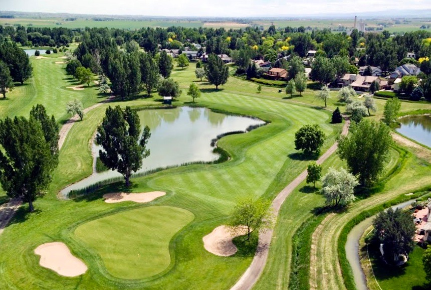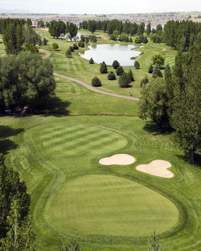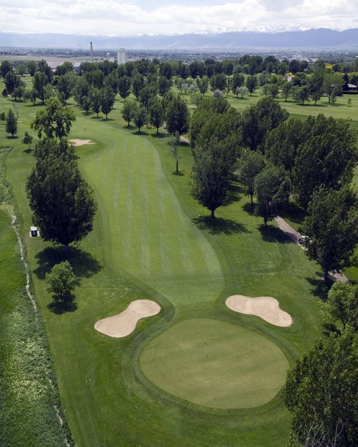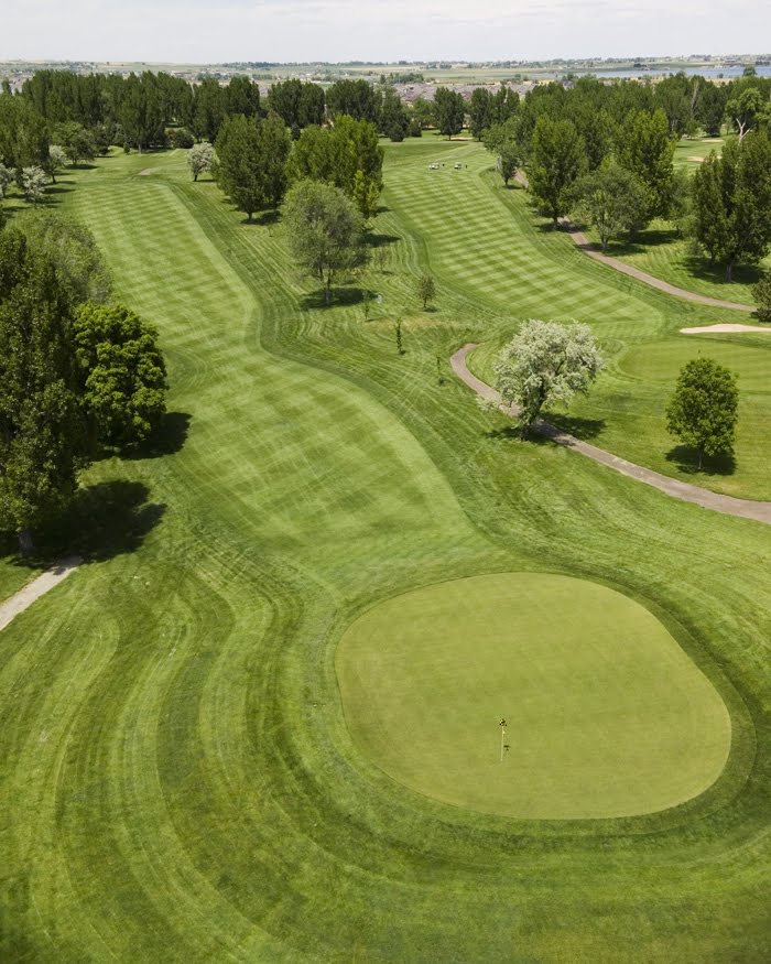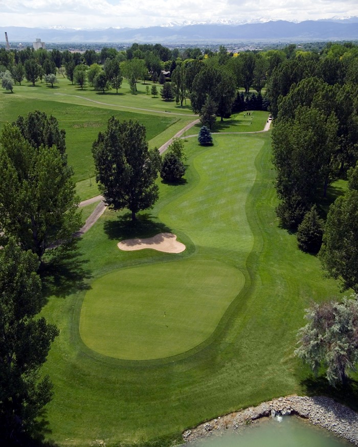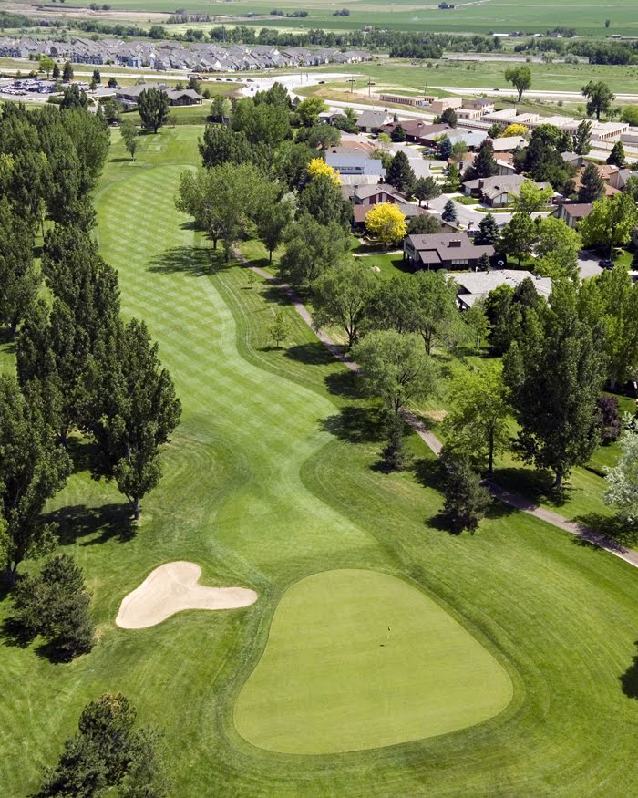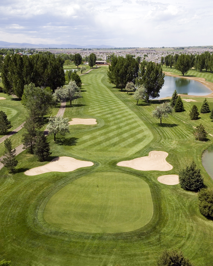 Hole #17 is the last Par 3 of the course. The average distance is about 170 yards to a large green. However, a deep bunker guards the front; long shots will find the water behind the green: and a mature cottonwood will knock down shots to the right. With the only bailout on the left, it makes for tough shot down the stretch as you are finishing your round.
