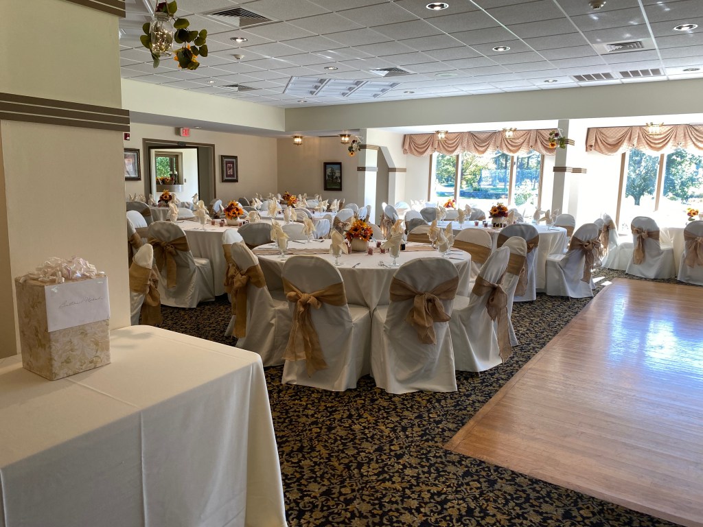 Our lovely appointed Banquet Room will accommodate up to 120 guests and offers a spectacular view of several holes of our highly rated and meticulously manicured Private Country Club. Additionally, we also offer an outdoor venue option with our beautifully designed Wedding Arbor area.